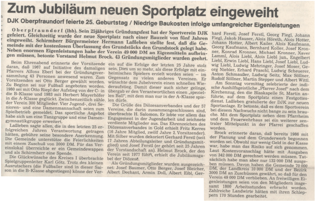 Unter der Schirmherrschaft von Herrn 1. Bgm. Hermann Laßleben konnte die DJK vom 27.06 bis 28.06.92 sein 25-jähriges Bestehen feiern.