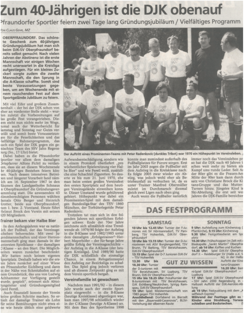Vom 14.07. – 15.07.2007 konnte die DJK auf dem Sportgelände Oberpfraundorf sein 40jähriges Bestehen feiern.