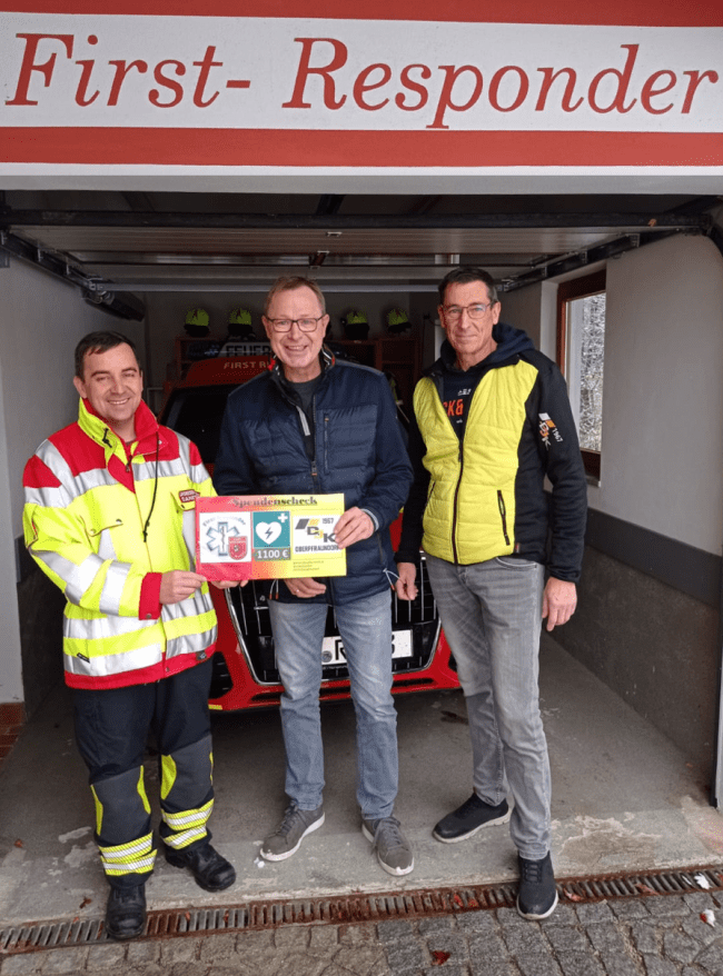 Zusammen mit unserer ersten Spende war es uns möglich insgesamt 1500 Euro zur Beschaffung neuer Defibrillatoren zu überreichen. Wieso genau diese Spende so wichtig ist und weshalb das für uns so ein großes Anliegen ist, könnt ihr noch einmal in unserem Beitrag „Spendenaktion für First-Responder Rechberg“ aus dem Oktober nachlesen.