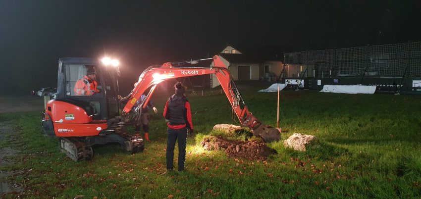 Aus diesem Grund wurden im Zuge zweier Arbeitseinsätze 11 junge Hainbuchen und Silberlinden am Sportgelände gepflanzt. In Zukunft sollen die Bäume uns nicht nur zum Schatten spenden. Sie werden auch der Bodenerosion am Hang entgegen wirken, einen natürlichen Windschutz bieten und die Austrocknung des Bodens vermindern. Nebenbei stellen Sie auch eine optische Abgrenzung unseres Sportplatzes dar.