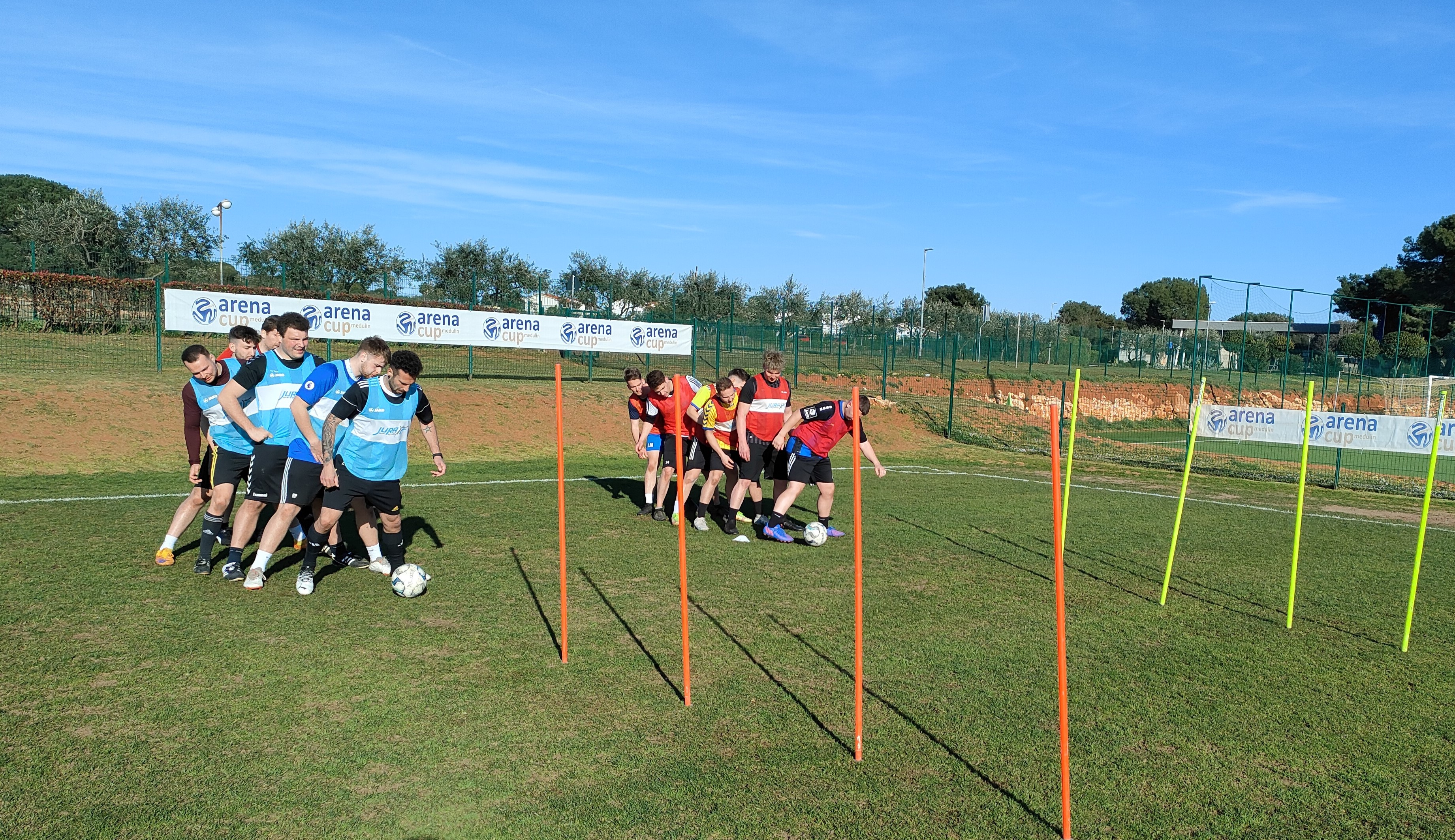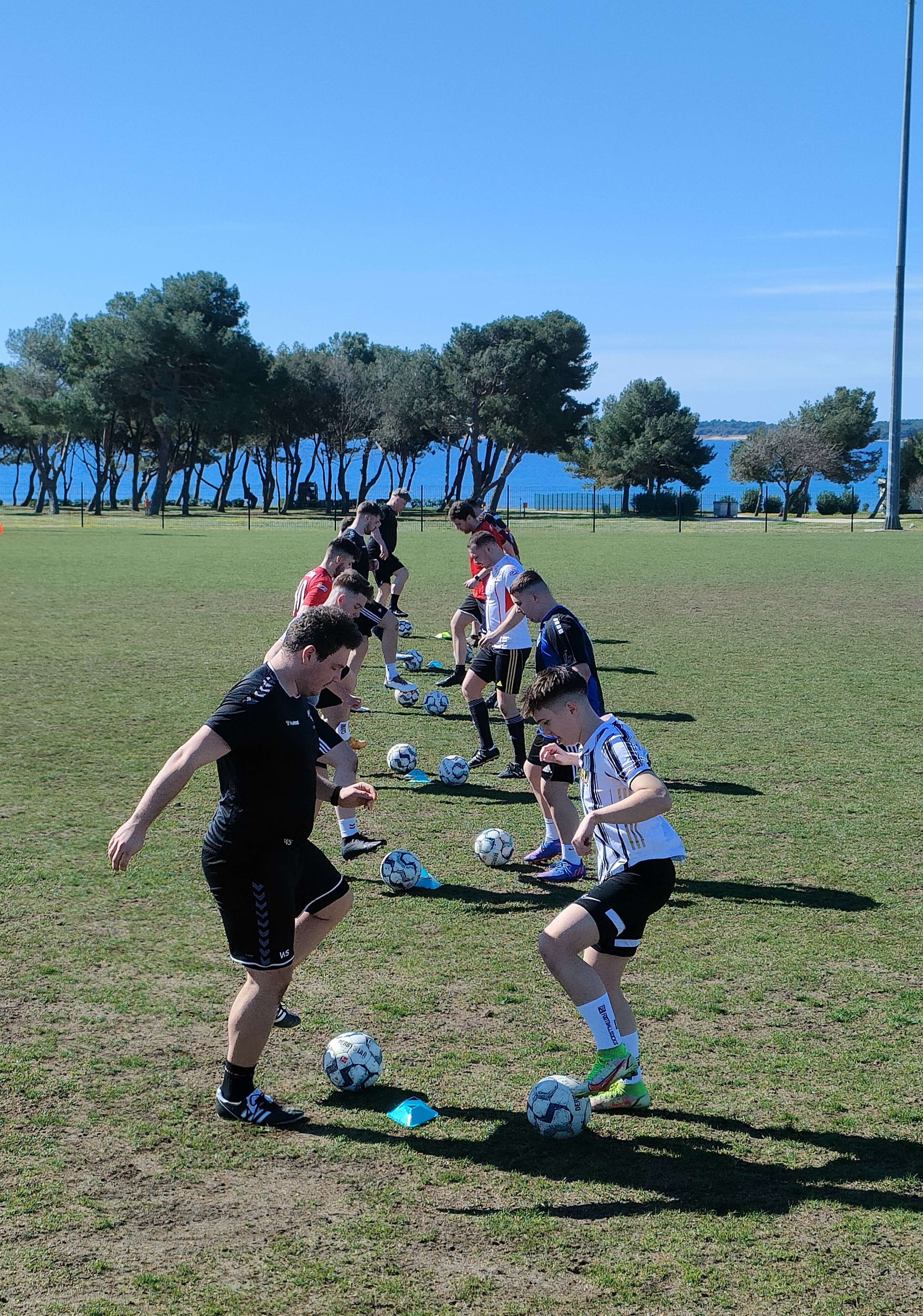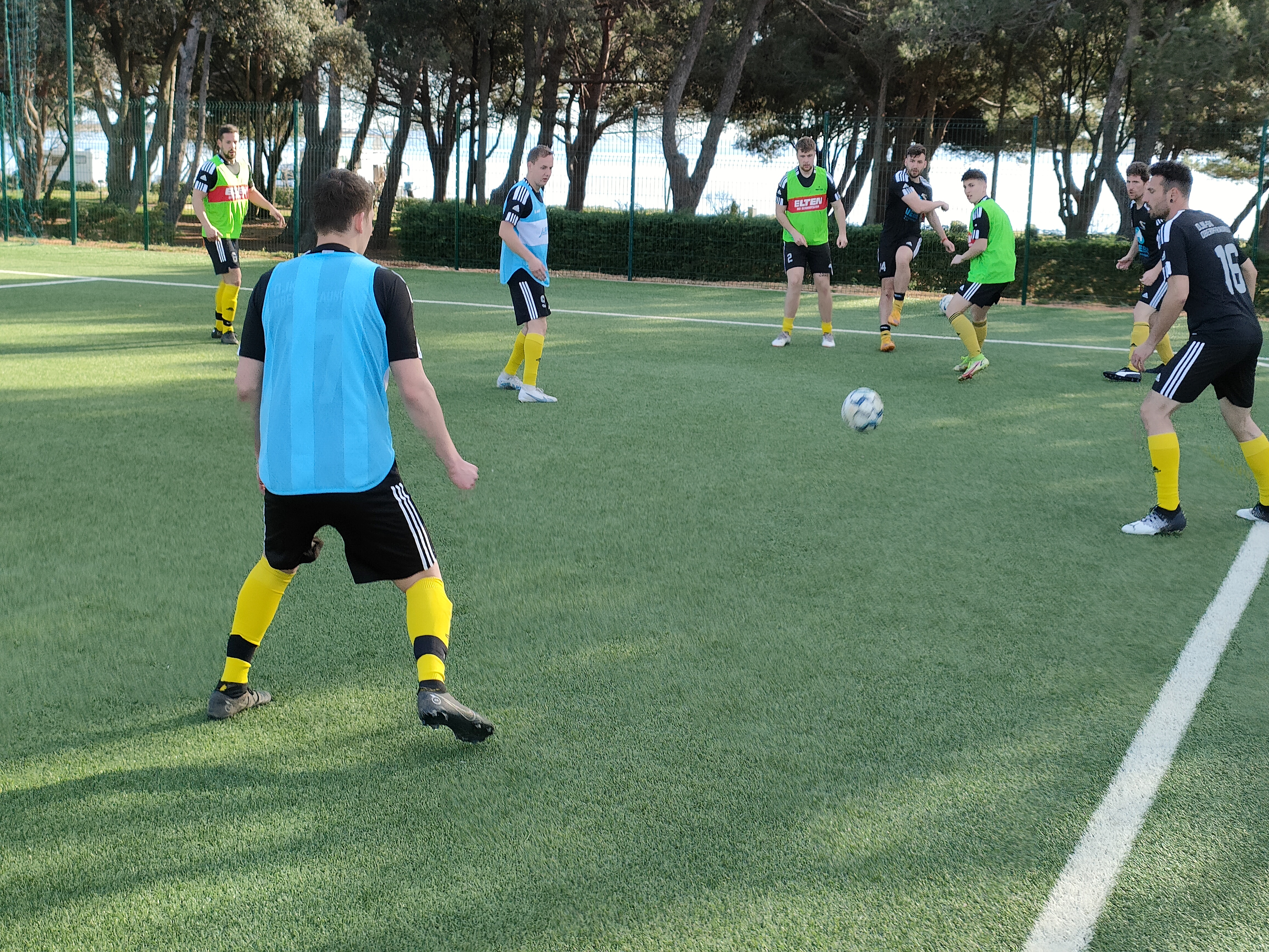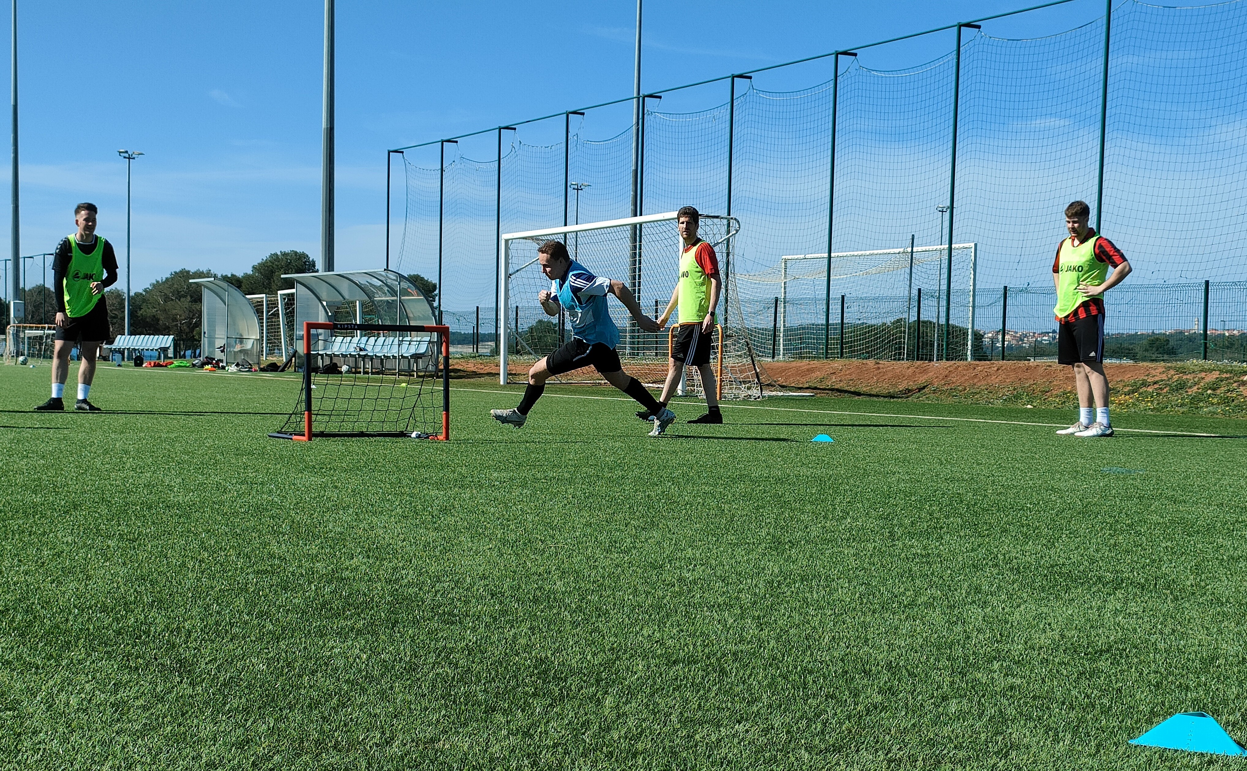 Beim Mannschaftstraining wurde weiter am Aufbauspiel aus einer sicheren Defensive gearbeitet. Der Fokus lag hierbei vor allem auf der dynamischen 3er-Kette und dem Spielaufbau aus der 4er-Kette inkl. Torwart. Dabei stand die Einheit auch ganz im Zeichen des bevorstehenden Testspiels am Nachmittag. Davor hatte die Mannschaft allerdings noch einmal Freizeit. Diese nutzte jeder individuell, um sich auf das bevorstehende Spiel vorzubereiten. Während ein Teil auf Entspannung und Regeneration setzte, unternahmen andere noch einen Ausflug in die Ortsmitte von Medulin.