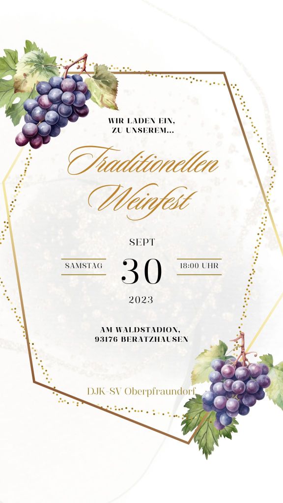 Bereits vor unserem Weinfest gibt es für Euch einiges zu sehen. Den Anfang machen unsere DJK-SV Oberpfraundorf Damen. Sie spielen um 15 Uhr gegen die Damen des SC Regensburg III. Im Anschluss findet dann ab 17 Uhr das Spiel unserer Herren I gegen die DJK-SV 1970 Lengenfeld statt.