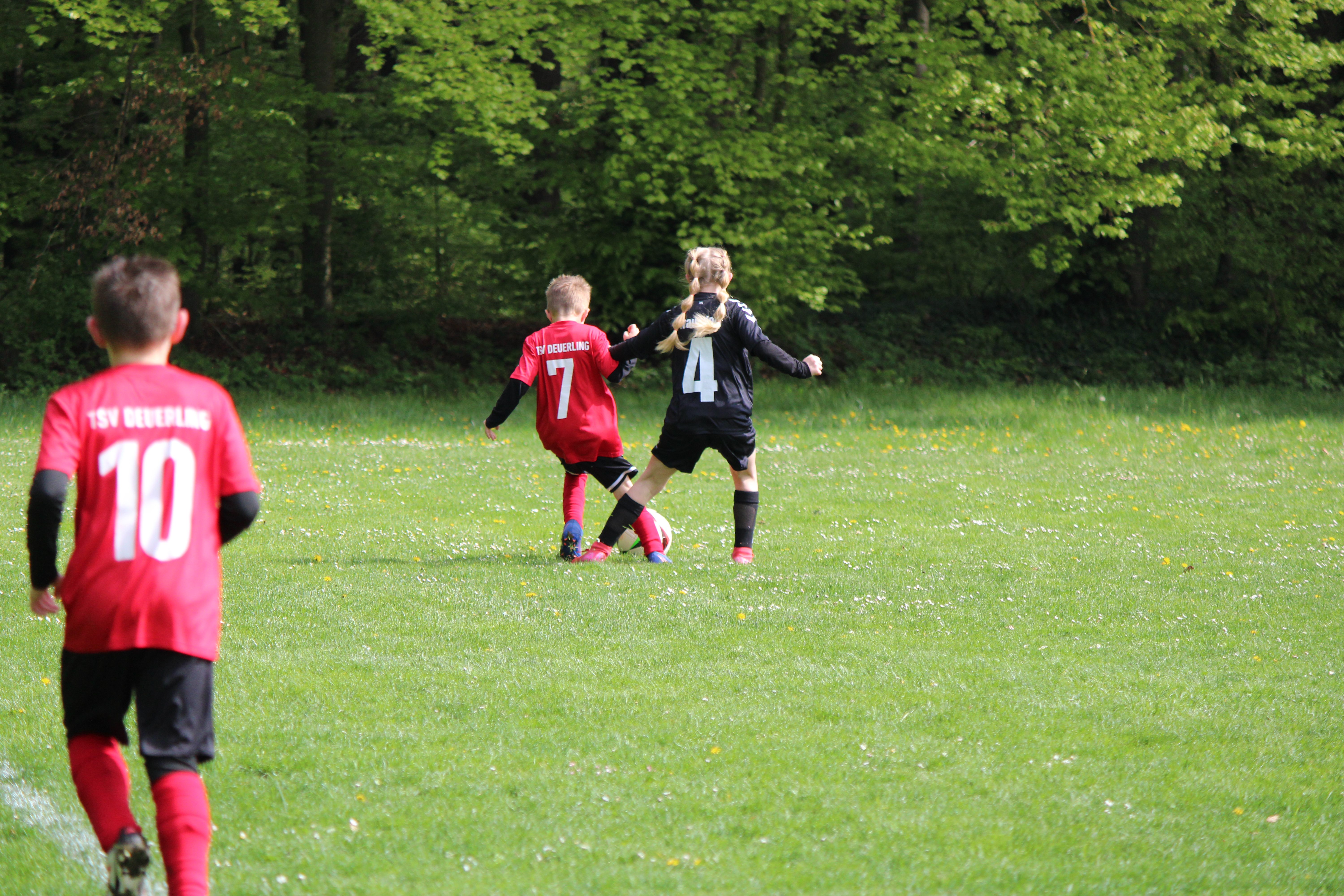 Natürlich ließen es sich unsere Spieler nicht nehmen gleich ihr nächstes Spiel in den neuen Trikots auszutragen. Dabei spielten Sie im Waldstadion gegen den TSV Deuerling. In einem spannenden Spiel trennten sich beide Mannschaften am Ende 4:4 unentschieden. Nachstehend ein paar Impressionen aus dem Spiel.