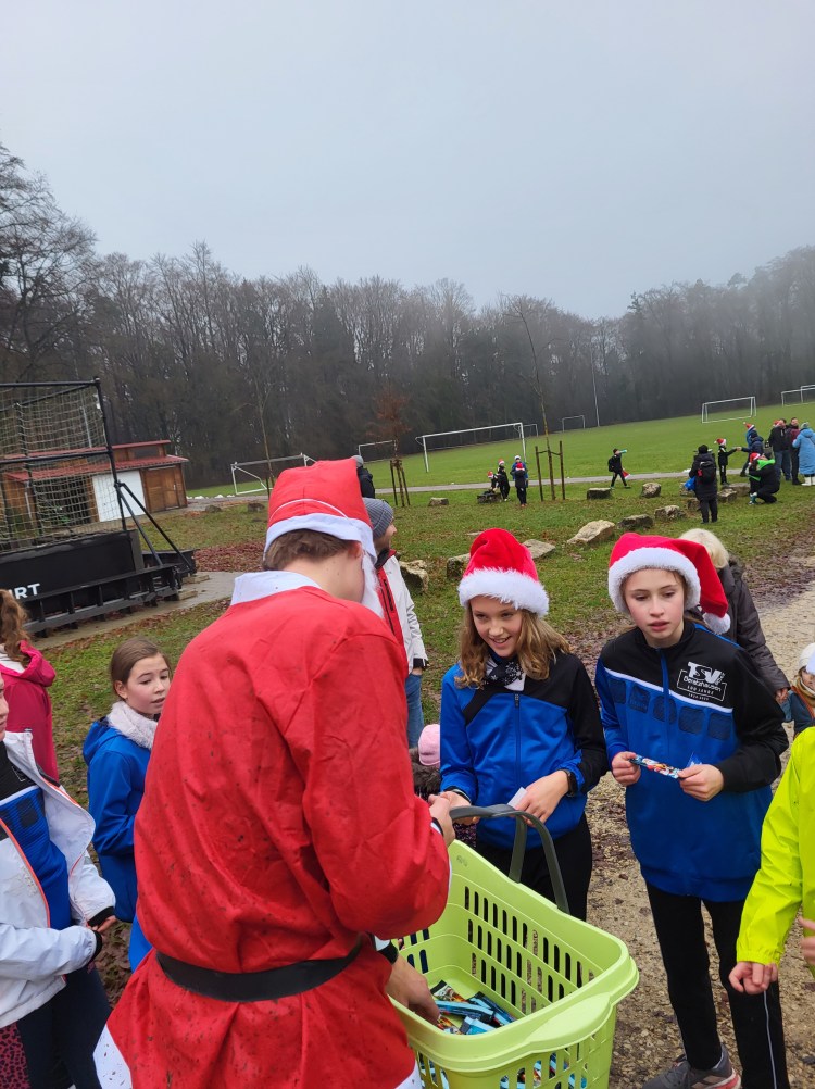 Dank diesem Vorsprung wurde unser Nikolaus erst kurz vor der Ziellinie von den Kids gefangen. Im Ziel erwartete der Nikolaus anschließend alle Kinder mit einer kleinen Überraschung. Dieser Moment war sicherlich einer der Höhepunkte des Tages und sorgte für viele strahlende Gesichter bei den Kindern.