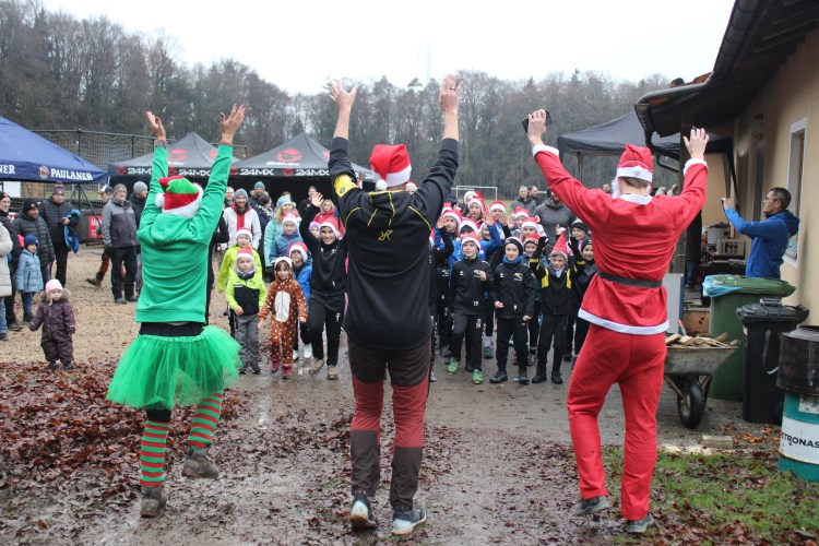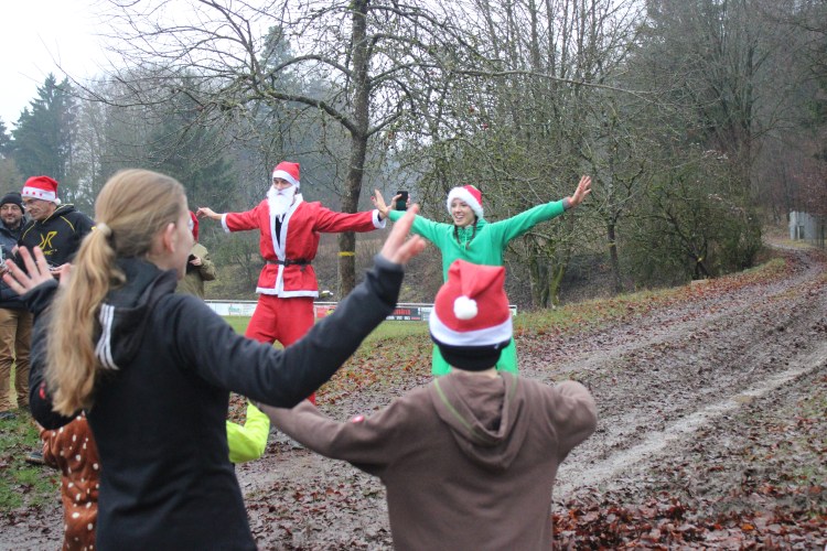 Unsere Kids starteten als letzte Gruppe und auch sie wurden mit einem speziellen Warm-up vorbereitet. Unser Abteilungsleiter wurde hierbei von unserer Elfin, in Form der Organisatorin Jessica Vettermann und dem Nikolaus unterstützt. Die drei haben die Kids tänzerisch auf die kommende Strecke eingestimmt. Zum Start bekam der Nikolaus einen kleinen Vorsprung und direkt darauf folgten bereits die Kids.