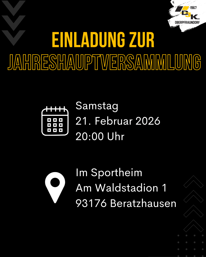 am Samstag, den 21.02.2026 um 20:00 Uhr laden wir euch recht herzlich zu unserer Jahreshauptversammlung ein!